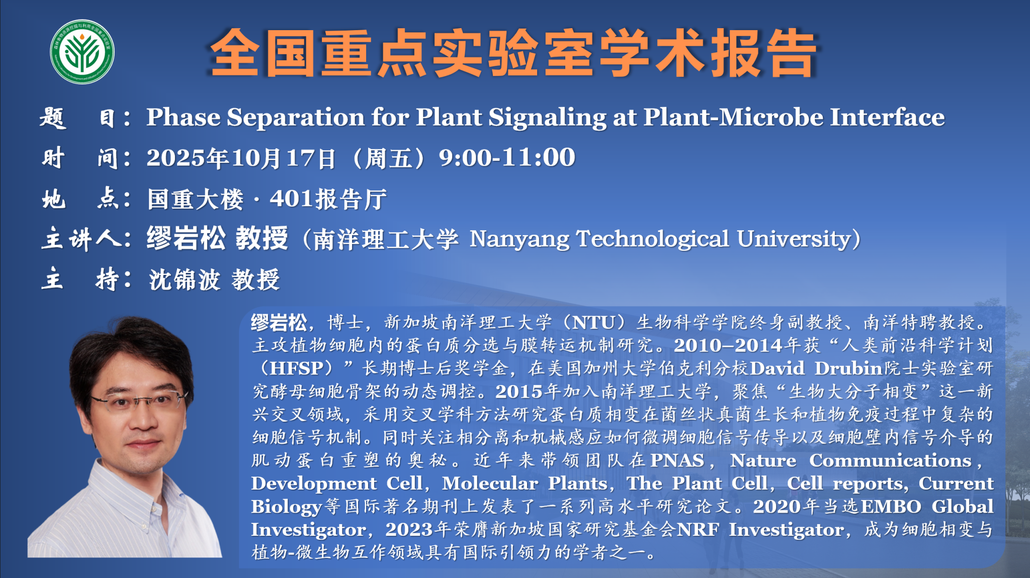 学术报告:Phase Separation for Plant Signaling at Plant-Microbe Interface