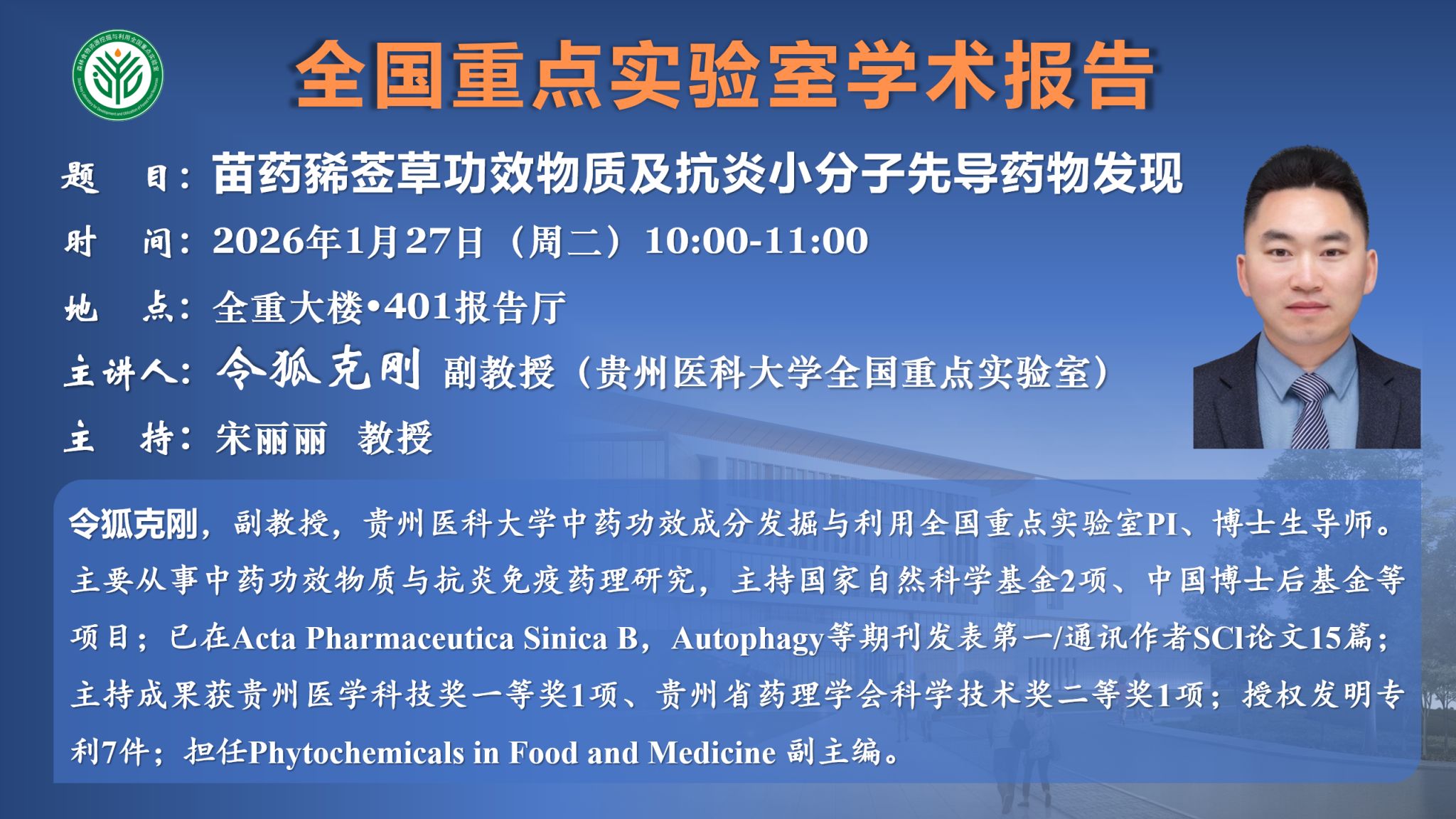 学术报告:苗药豨莶草功效物质及抗炎小分子先导药物发现